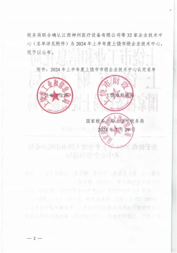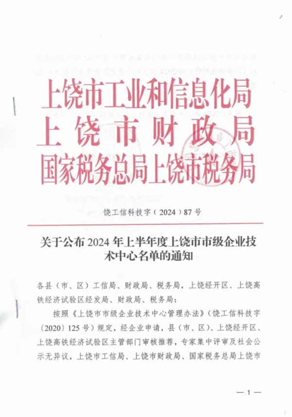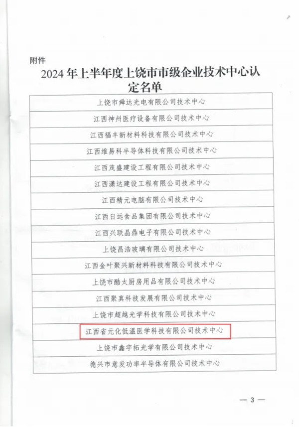 近日,江西省元化低温医学科技有限公司顺利通过上饶市工业和信息化局审核,获批2024年上饶市市级企业技术中心。